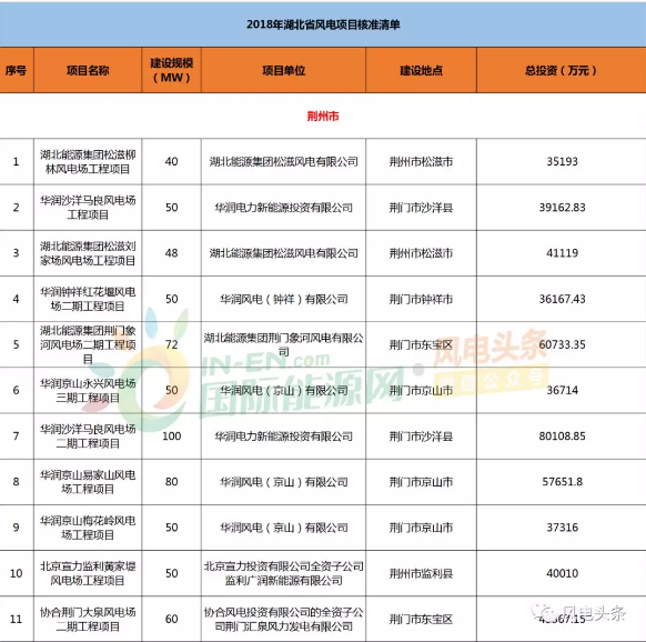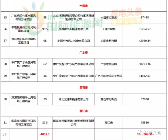 湖北省发改委共核准61个风电项目,建设规模共计4051.3MW,总投资达3352862.31万元(约335.29亿元)。