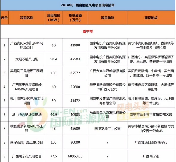 广西壮族自治区发改委共核准46个风电项目,建设规模共计2921.2MW,总投资达2567163.53万元(约256.72亿元)。