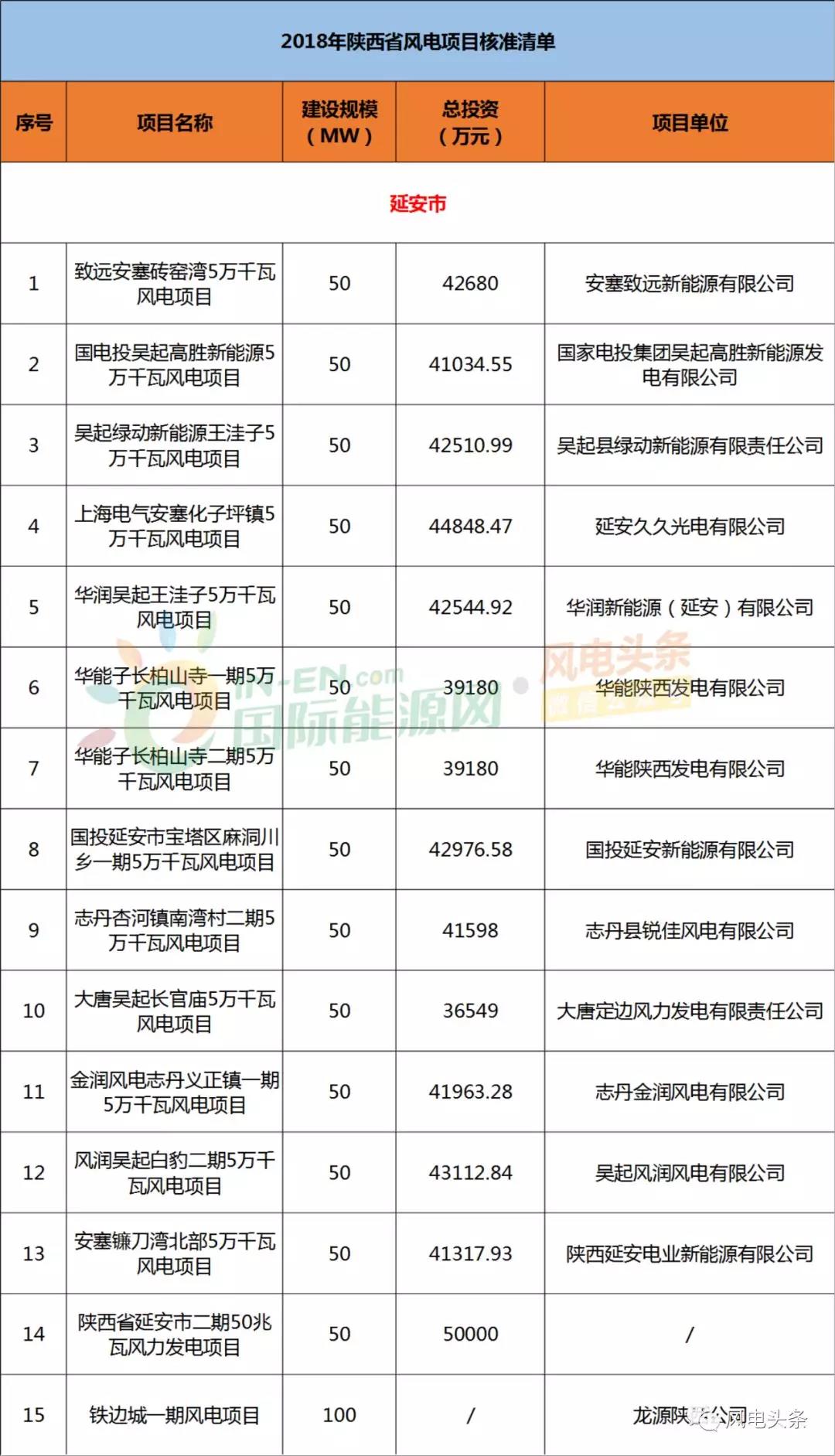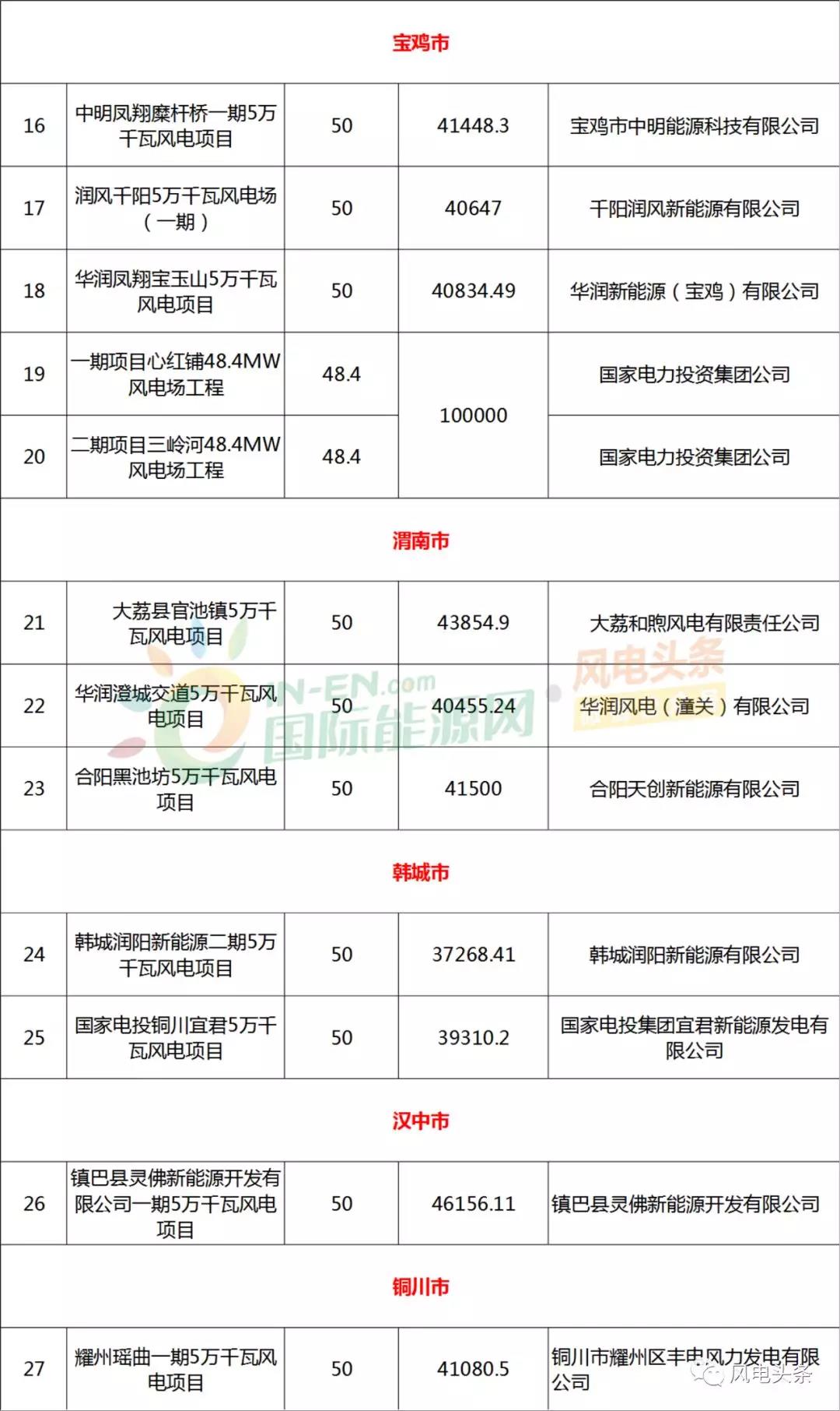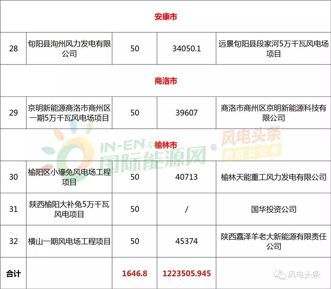 陕西省发改委共核准32个风电项目,建设规模共计1646.8MW,总投资达1223505.945万元(约122.35亿元)。