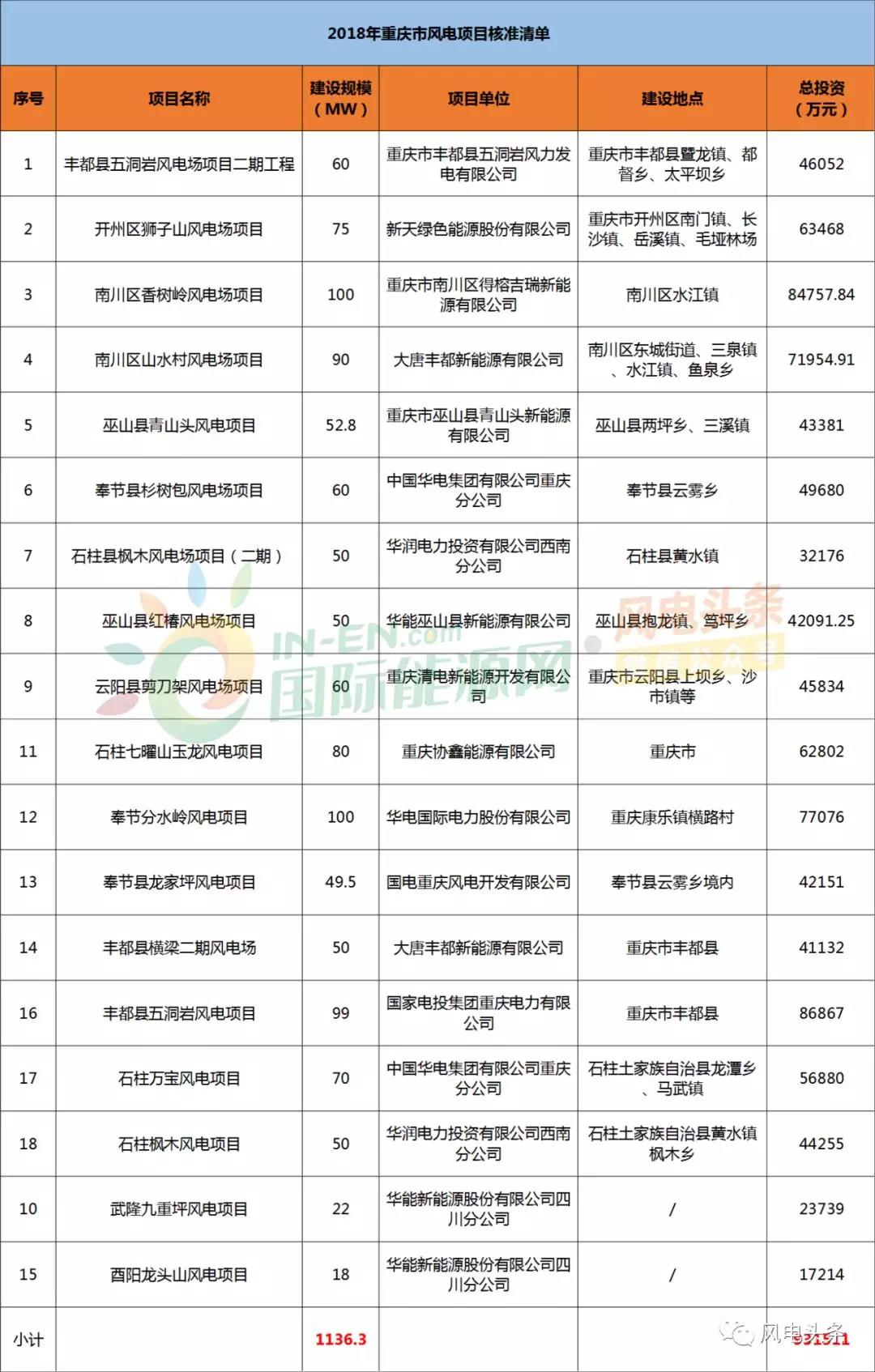 重庆市发改委共核准15个风电项目,建设规模共计1136.3MW,总投资达931511万元(约93.15亿元)。