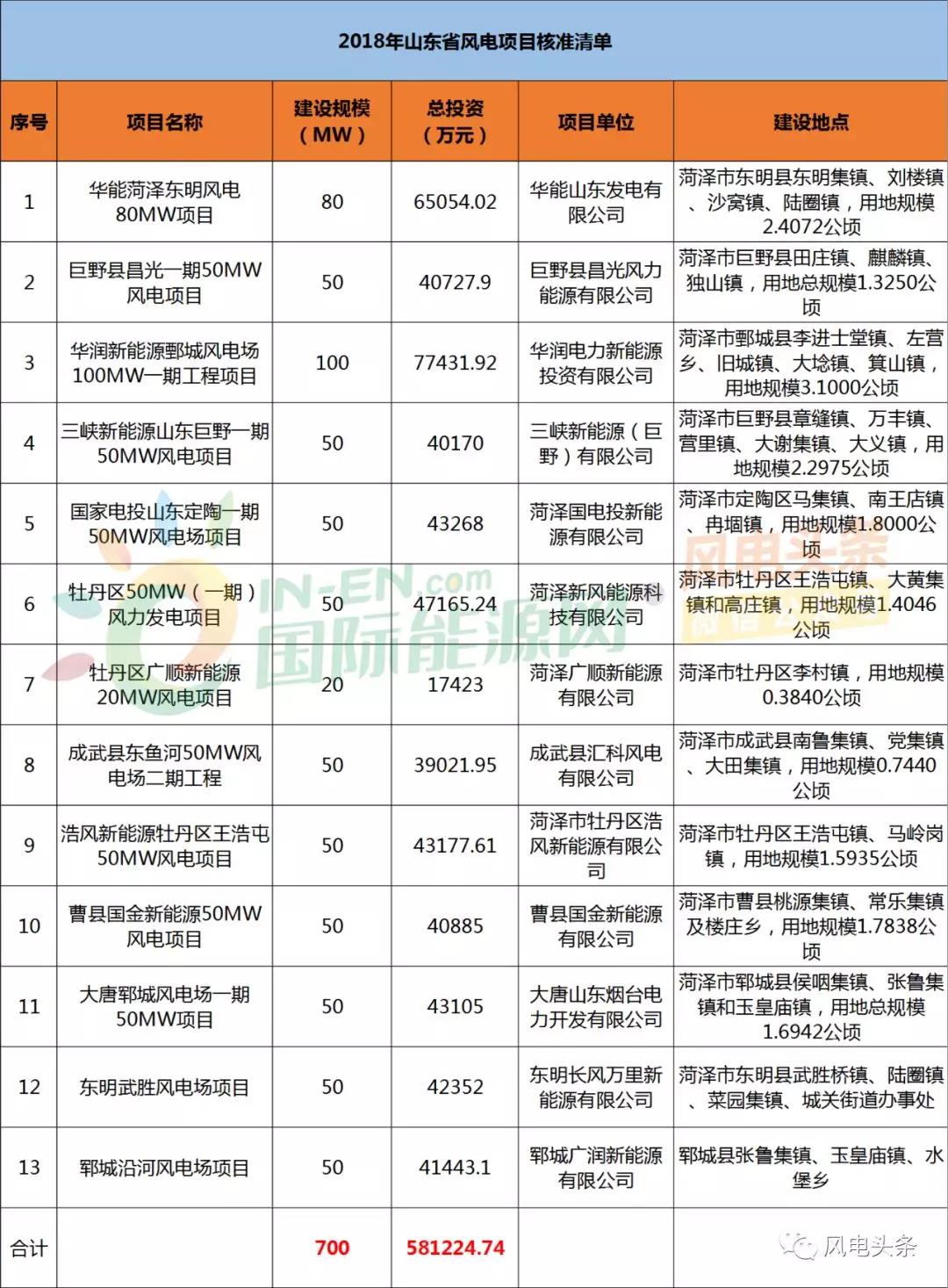 山东省发改委共核准13个风电项目,建设规模共计700MW,总投资达581224.74万元(约58.12亿元)。