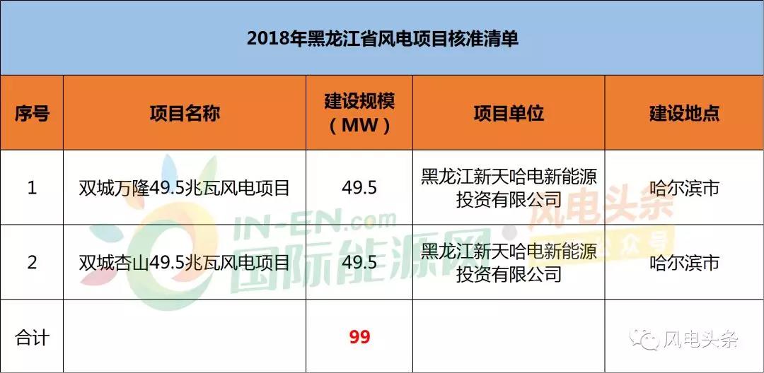 黑龙江省发改委共核准2个风电项目,建设规模共计99MW。