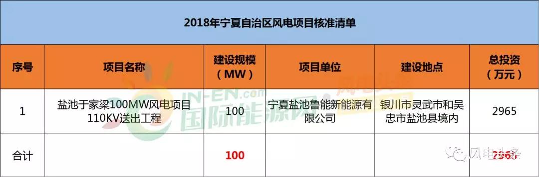 宁夏回族自治区发改委共核准1个风电项目,建设规模共计100MW。