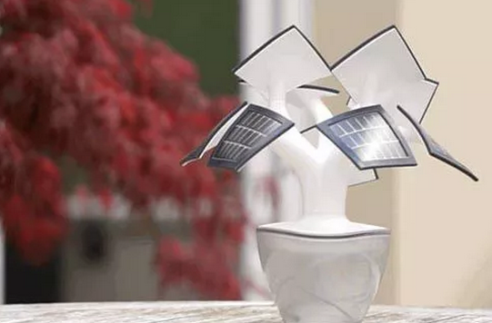 每片树叶都是一块太阳能面板,可调节方向,给内置的三节电池充电。你可以通过底盆的USB接口给手机充电,也可以利用LED模块来实现照明。