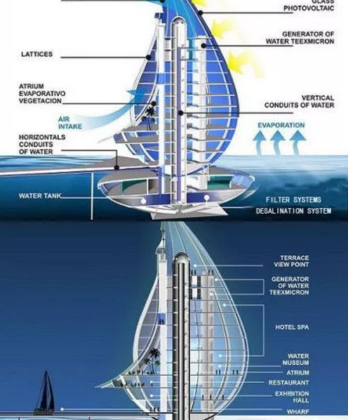 外形为水滴形状,是第一个借助太阳能从大气中提炼出水的建筑。其南面是光电玻璃面,在能收集太阳能的同时也能让光线穿过;北面是网格式设计,装有Teex Micron设备,能把潮湿的空气冷凝成纯净的饮用水。此外,其底层的水处理设备还能淡化海水和纯净雨水