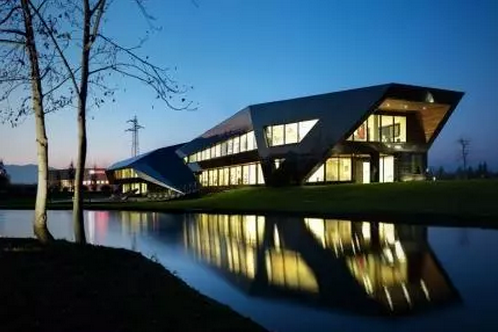 【意大利建筑师内格雷办公楼建筑设计 】officina vidre negre 神秘又庄重的黑色玻璃作为外立面,并设有PV太阳能光伏,整体结构是棱形的分割形式。