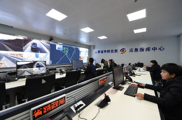 两个智能监控中心一个是甘肃省路网监测应急指挥中心。该平台利用全省高速公路、干线公路上的7000多个视频实时监测全省公路,随时发现春运期间道路拥堵、路障等信息。该平台还汇聚全省182个应急物资储备库、14个应急中队以及相关设备等应急抢险保障资源,春运期间一旦发现拥堵,立即调度,快速处理突发事件。