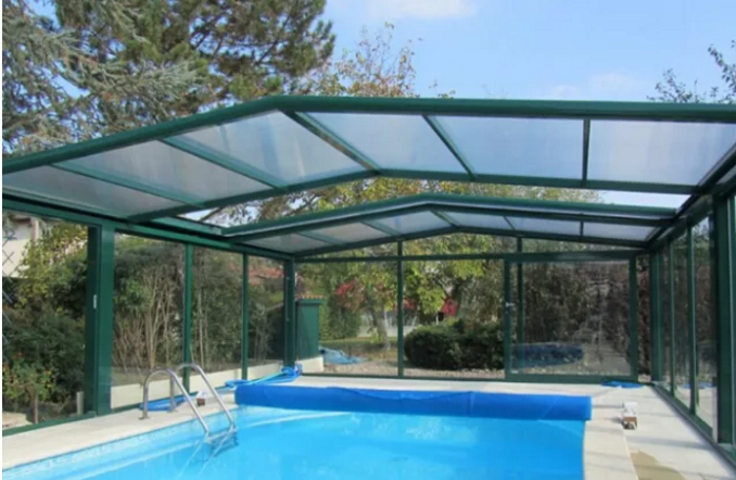 室外搭建一个光伏游泳池小屋,夏天可以遮阳发电,冬天依靠太阳能光伏板发电给游泳池水加热,不用担心水温过低,这样四季都可以享受游泳的乐趣,这样的生活简直完美!