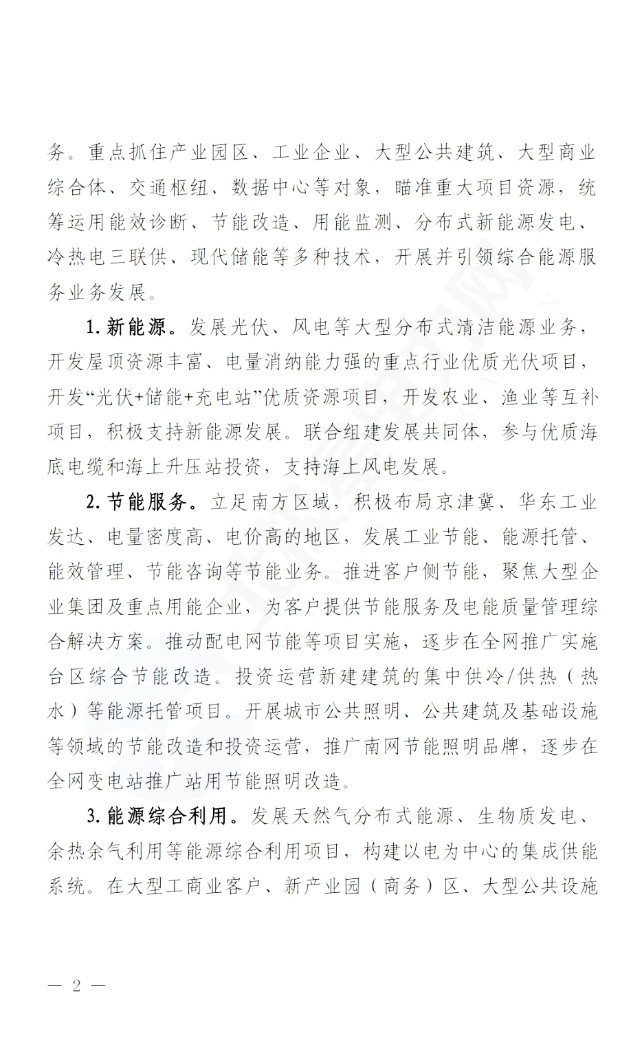 结合客户降低能源成本、减少投资的需求,以用电业务代办、设备托管、能效诊断为切入点,综合采用多种能源、技术、创新商业模式,为客户提供具有竞争力的定制化综合能源服务整体解决方案;充分发挥公司品牌、营销渠道、配套电网建设等优势,向目标用户推介综合能源服务组合,建立服务价格优势。