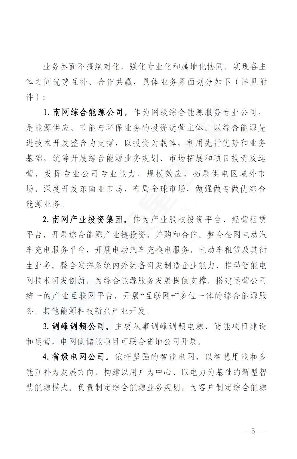 此外,南方电网还明确了各主体之间业务发展界面的划分,涉及南网综合能源公司、南网产业投资集团、调峰调频公司、省级电网公司、地市供电局等,以建立并实现两类业务协同机制,即各级管制类电网公司、供电企业为综合能源服务业务发展主体,推动“供电+综合能源服务”业务转型。