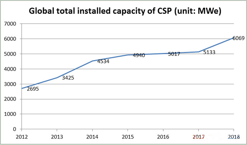 图:CSPPLAZA统计的全球已建成光热装机量(2012-2018)