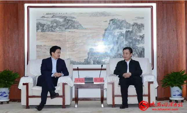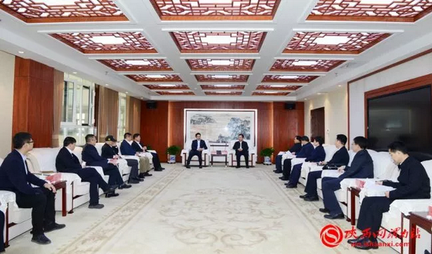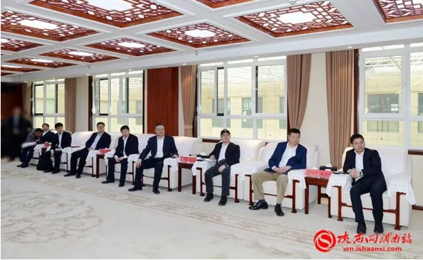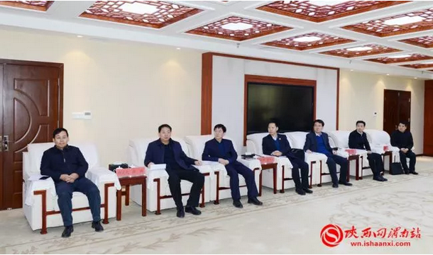 1月16日上午,渭南市政府与华润电力控股有限公司、中车株洲电力机车研究所有限公司合作项目签约仪式在渭南经开区举行。图为:签约仪式前,渭南市市长李毅会见华润电力中西大区总经理辛文达一行。记者 许艾学摄
