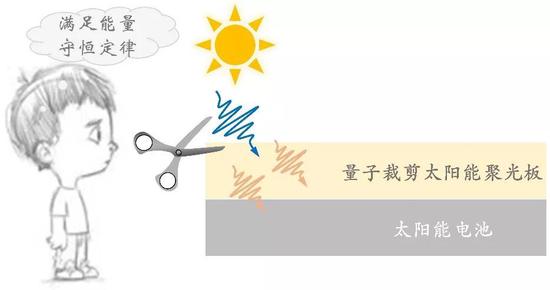 传统的荧光型太阳能聚光板发光团的荧光率通常小于80%,这导致了器件内部光学效率一般小于60%。而量子裁剪是一种新奇的光学现象,基于该效应的材料可吸收一个高能光子,同时又能释放两个低能光子,满足了能量守恒的基本物理规律。