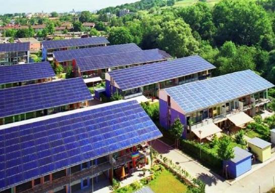 最后,我们要介绍的不是一幢房屋或者一栋大厦,而是位于德国弗莱堡的小城Sonnenschiff。Sonnenschiff整个城市的电力运转都是通过各个房屋顶部的太阳能电池板来完成。
