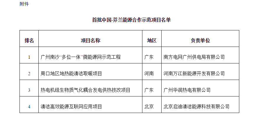 关于首批中国-芬兰能源合作示范项目名单的公示