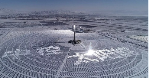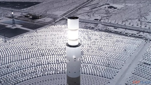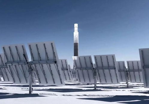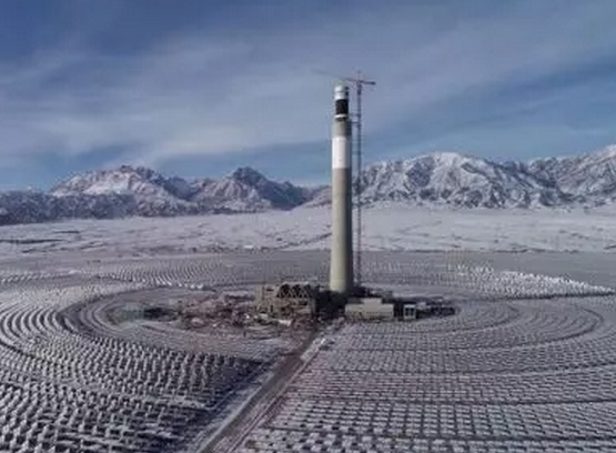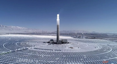 聚光中的吸热塔仿若照亮光热事业的灯塔