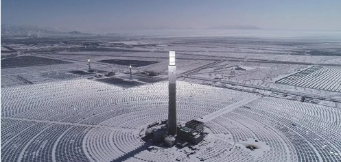 一睹中控德令哈50MW塔式光热电站雪后雄姿