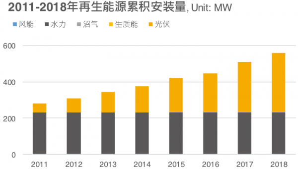 目前孟加拉的能源需求主要仰赖燃煤,再生能源发展上仅以光伏的成长趋势较为明显,原因除了光伏是现在再生能源发展的核心项目之外,全球光伏技术逐步成熟驱使产业发展亦是主因之一。然而其他项目的推动上较无起色甚至已进入停摆的状态。