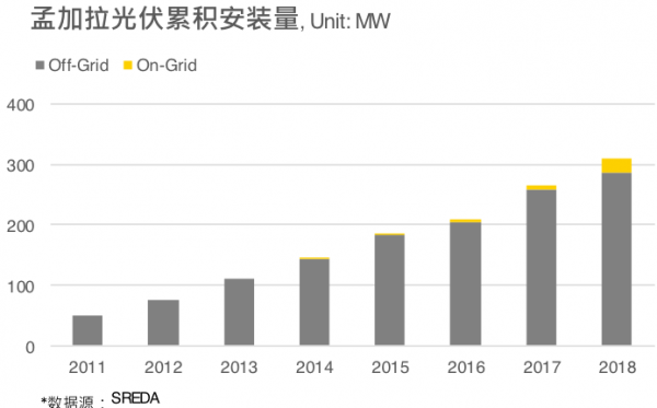 孟加拉光伏尚在起步的阶段,过去为解决偏远农村地区的缺电问题,政策的走向多集中在在离网项目(Off-grid)的需求上,现在为迎合经济成长的趋势,满足未来大量的能源需求,政府开始致力推动并网项目(On-grid),也因此相关政策在近年开始陆续出台。