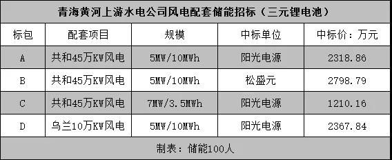由黄河上游水电公司投建的青海共和、乌兰两个风电配套储能项目,其中的三元锂、储能变流器各标包已于今日定标。