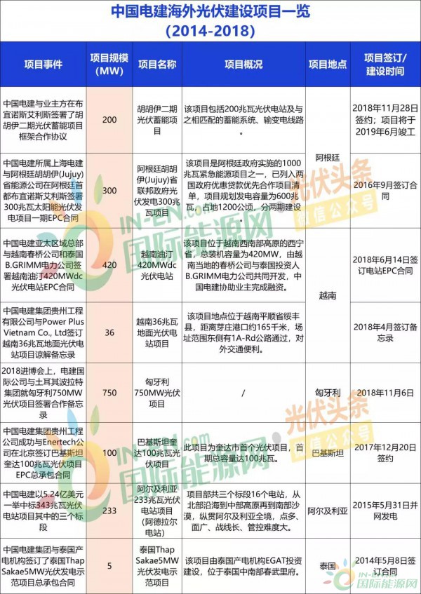 中国电建海外光伏建设项目一览