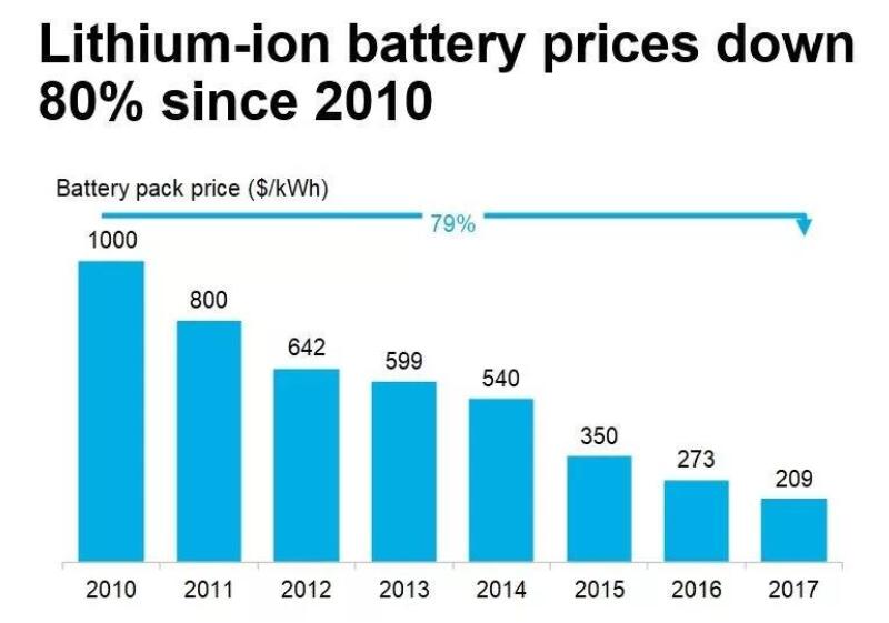 2010-2017年间全球储能系统成本骤降80%