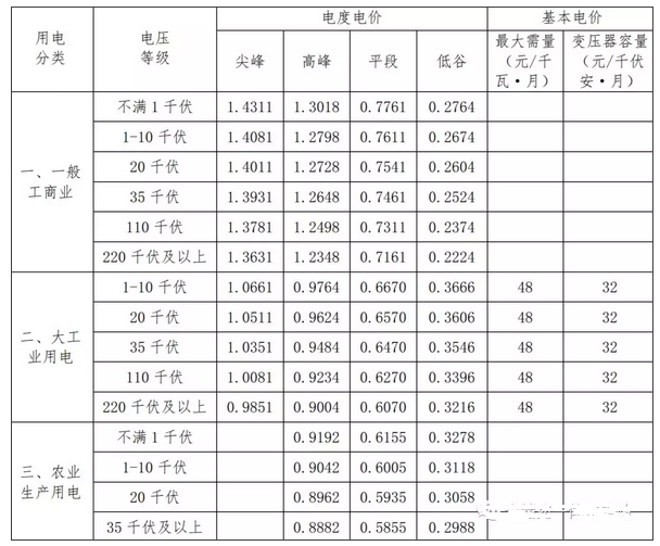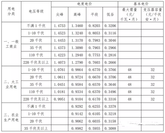 注:1. 表1~3所列价格,均含国家重大水利工程建设基金0.39分;除农业生产用电外,均含大中型水库移民后期扶持资金0.62分;除农业生产用电外,一般工商业及大工业用电含可再生能源电价附加1.9分。
