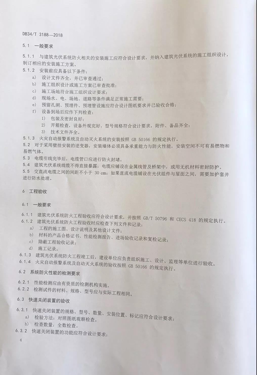 在该标准中,对光伏建筑的防火设计、工程施工、工程验收做出了明确要求。