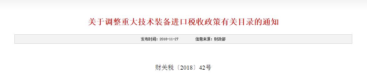 三、自2019年1月1日起,《财政部 发展改革委 工业和信息化部 海关总署 税务总局 能源局关于调整重大技术装备进口税收政策有关目录的通知》(财关税〔2017〕39号)予以废止。
