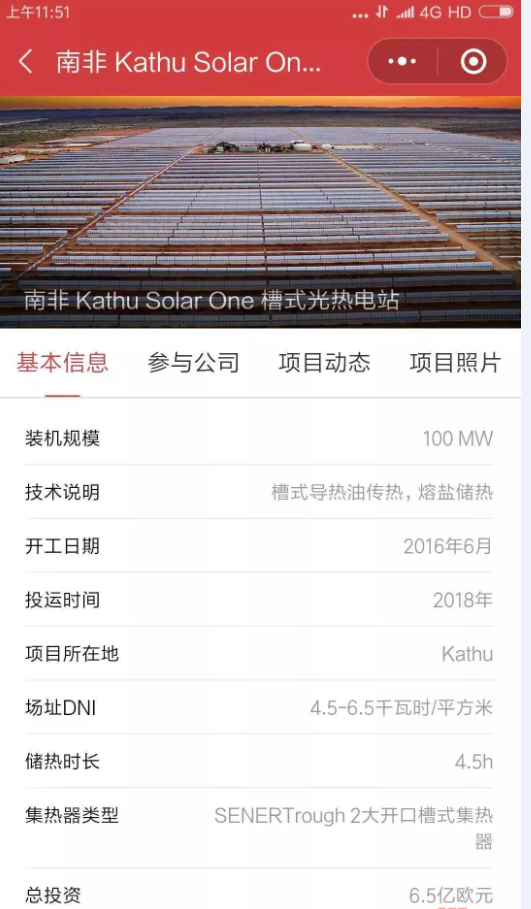 2015年4月,西班牙Sener和Acciona组成的联合体被选为南非Kathu光热电站的交钥匙承包商。