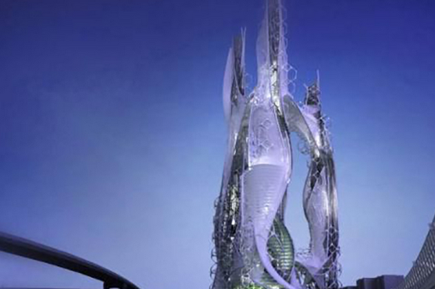 位于亚美尼亚,由瓦汉˙米萨坎(Vahan Misakyan)设计的“百变摩天大楼”(Evolving Skyscraper),用于各种各样的用途,比如居住、办公和休闲娱乐,表面覆盖着“智能皮肤”,不仅可以吸收太阳能为整栋大楼供电,还可以收集雨水,控制进入楼内的光线。
