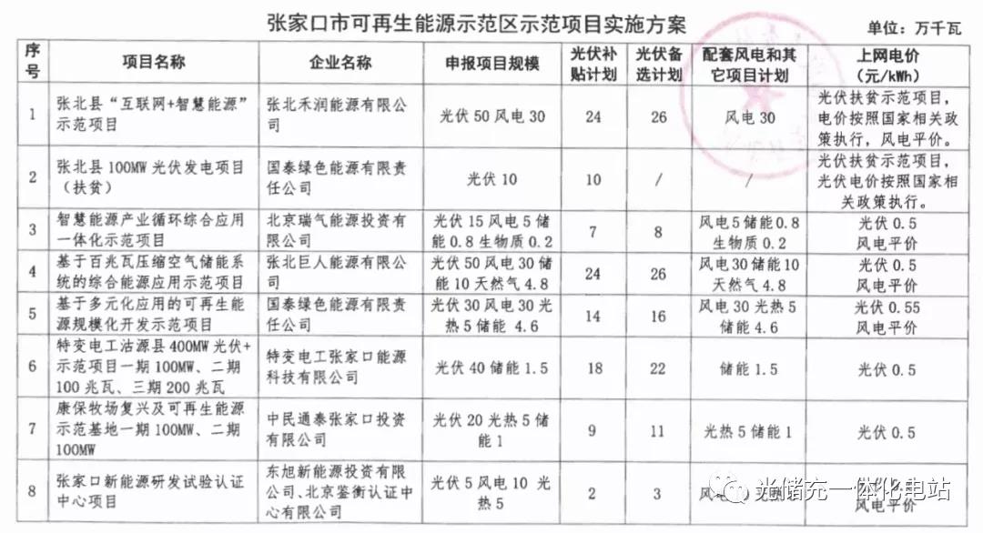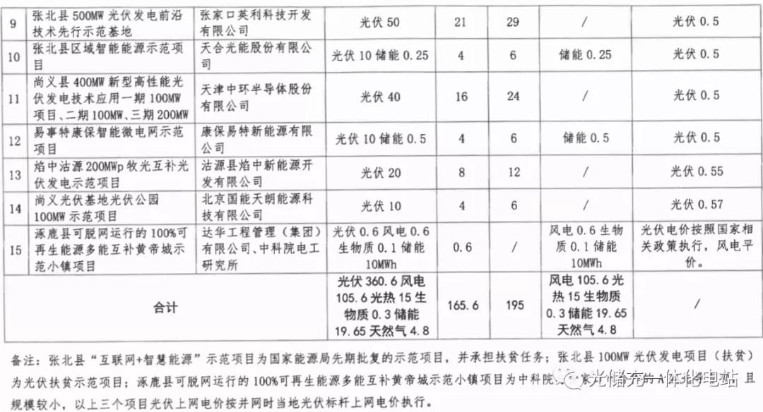 三、有关要求。一是项目开发企业要及时到电力质量监督部门进行工程注册,并严格按照承诺的技术标准和技术路线,高标准、高水平开展项目建设工作,确保发挥示范作用。二是光伏项目按承诺的上网电价执行,若高于并网时张家口地区对应的上网电价标准,则按照届时最新电价政策执行;风电项目按平价上网电价执行;其它项目按国家规定的上网电价执行。三是张家口市要加强项目监督管理,结合项目进展情况,对推进迟缓或不具备建设条件的项目,及时上报调整意见。四是电网公司要加快电网工程建设,为示范项目及时并网创造条件。