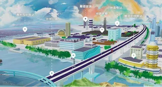 打造“智慧能源小镇”,最关键的就是智能光伏发电。辉腾能源充分挖掘镇内水、陆、空的光伏板可置空间,利用水面推进“渔光互补”、“农光互补”、“光伏停车棚”等项目建设,利用路面建设光伏公路,常见的屋顶太阳能光伏板争取实现镇域内全覆盖,此外,部分建筑物立面还将应用光伏玻璃幕墙。
