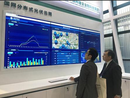 图:观展观众正在通过光伏云网运监平台查看北京光伏电站分布情况