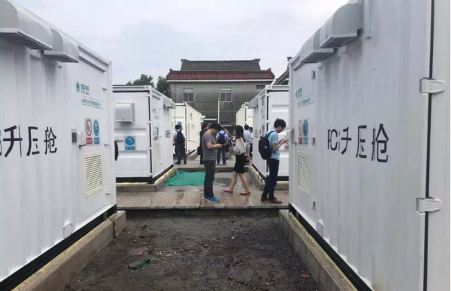 北山储能电站位于镇江综合保税区内,地处金港大道北侧,北山路东侧,占地面积为3472m2,于2018年7月9日投入运行。该储能电站建设总功率/容量为16MW/32MWh,由16座蓄电池舱(每座蓄电池舱安装1MW/2MWh磷酸铁锂电池组及BMS系统),16座PCS变流器升压变一体化舱(每座PCS变流器升压变一体化舱含1台容量为1250kVA升压变和2台500kW变流器组成),2座10kV汇流舱,2座10kV SVG舱,1座10kV所用变舱,1座智能总控舱组成,均为全预制舱布置。