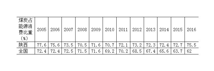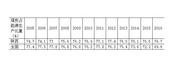 陕西是能源大省,但陕西的能源生产和消费均以煤炭为主,长期以来煤炭的生产和消费占比一直在70%以上。虽然煤炭资源为陕西经济发展做出了重要贡献,但煤炭资源转化效率偏低,煤炭消费带来的环境污染相对较重,给我省的生态环境带来不小的压力。