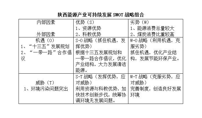 陕西能源产业的可持续发展既有优势、机遇,也有劣势和威胁,因此,陕西能源产业可持续发展需要扬长避短,抓住机遇,充分发挥优势,使陕西能源产业持续健康发展。
