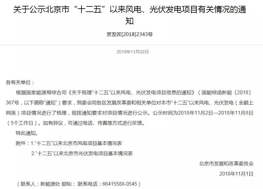 11月2日,北京市发改委发布《关于公示北京市“十二五”以来风电、光伏发电项目有关情况的通知》。