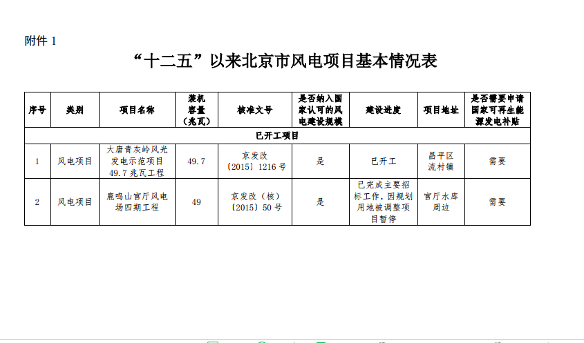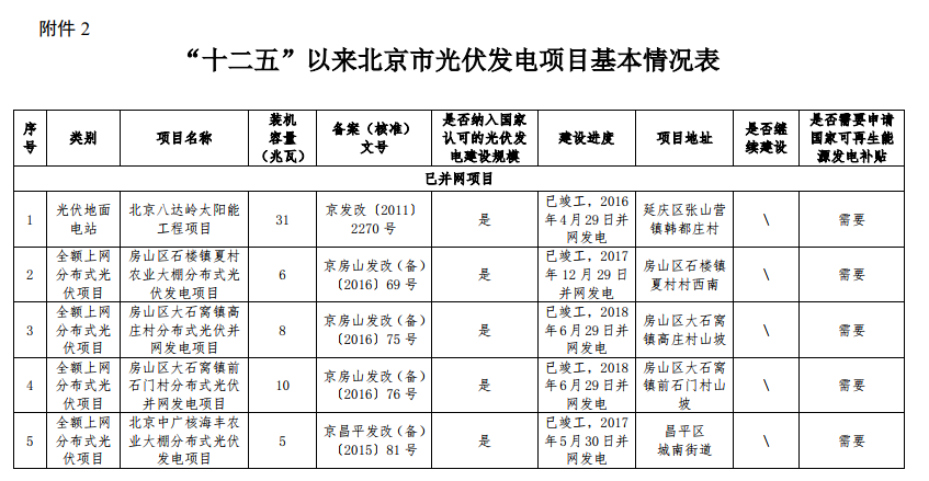 北京市发改委:“十二五”以来风电、光伏发电项目情况公示