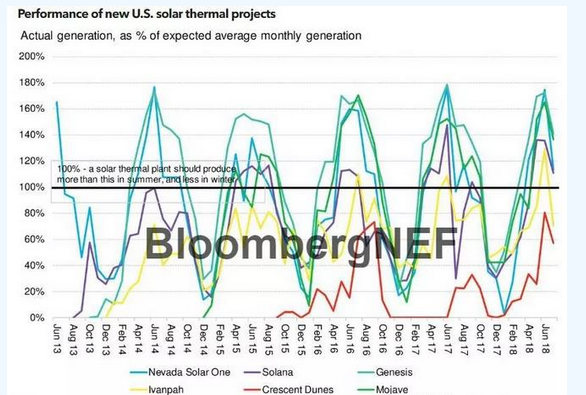 光热发电的投标价格已经大幅降低,然而并没有任何在新价格下的实际项目建成。光热发电的平准化度电成本(LCOE)据称介于100-110美元/MWh的范围内,在过去三年里下降了大约40%。