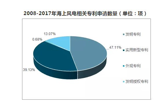 专利申请的变化同样说明海上风电的研发热度在不断上升。截至2018年6月,有关海上风电的专利数达到1178项,其中86%以上属于发明和实用新型专利。