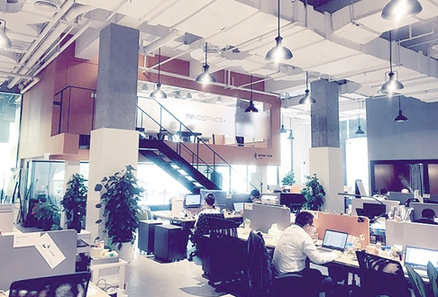 杨浦区引入的InnoSpace创业孵化器里,创业者们正在工作