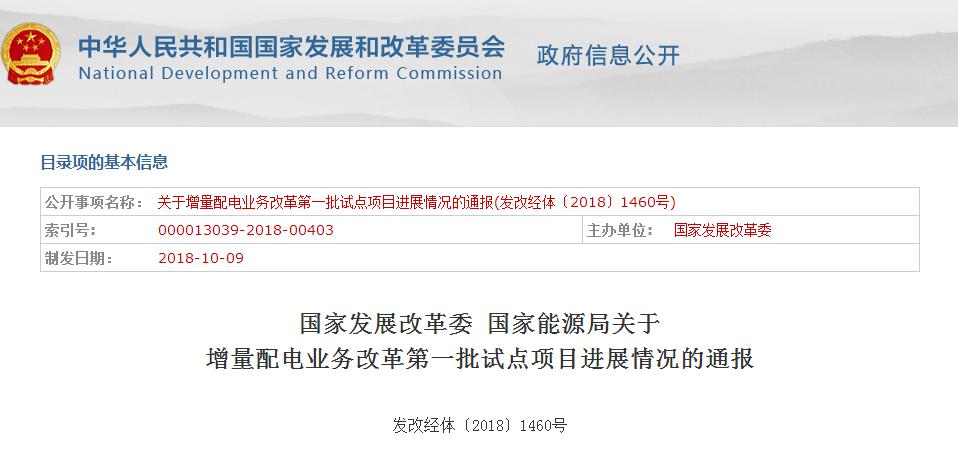 发改委、能源局通报增量配电业务改革第一批试点项目进展情况