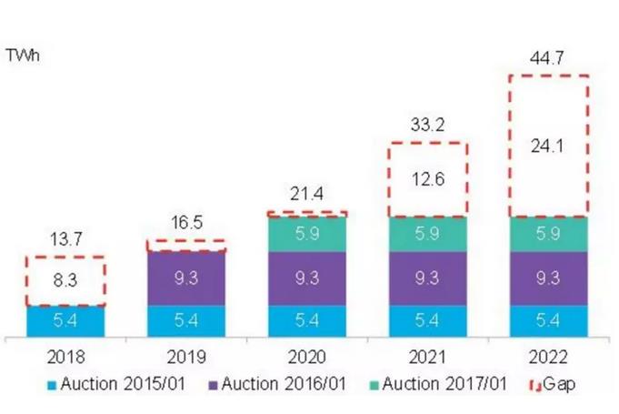 为了实现这一目标,墨西哥政府已提议在2020到2022年间引入清洁能源证书(CEL)机制。墨西哥可再生能源的提议配额将在2020年升至2100万(占墨西哥总发电量的7.4%)、2021年升至3300万(10.9%)、2022年升至4500万(13.9%)。