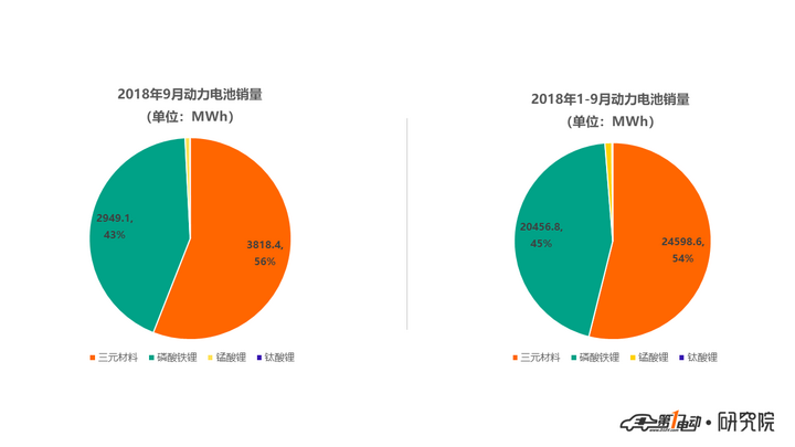 1-9月,我国动力电池累计销量达45.6GWh,其中三元电池累计销售24.6GWh,占总销量比53.9%;磷酸铁锂电池累计销售20.5GWh,占产量总比44.8%。