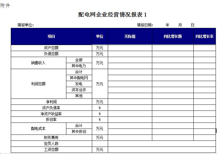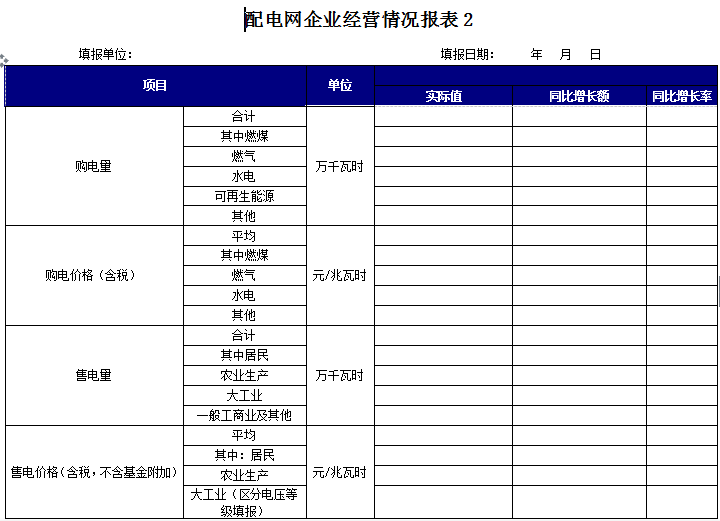 四、建立配电业务相关信息定期报送制度。各增量配电网企业应积极配合价格主管部门做好日常监管,指定专人整理归集配电网企业经营情况相关信息,并于每年7月底、次年1月底前向省价格主管部门报送配电网企业经营情况半年报和年报表(报表格式见附件)。