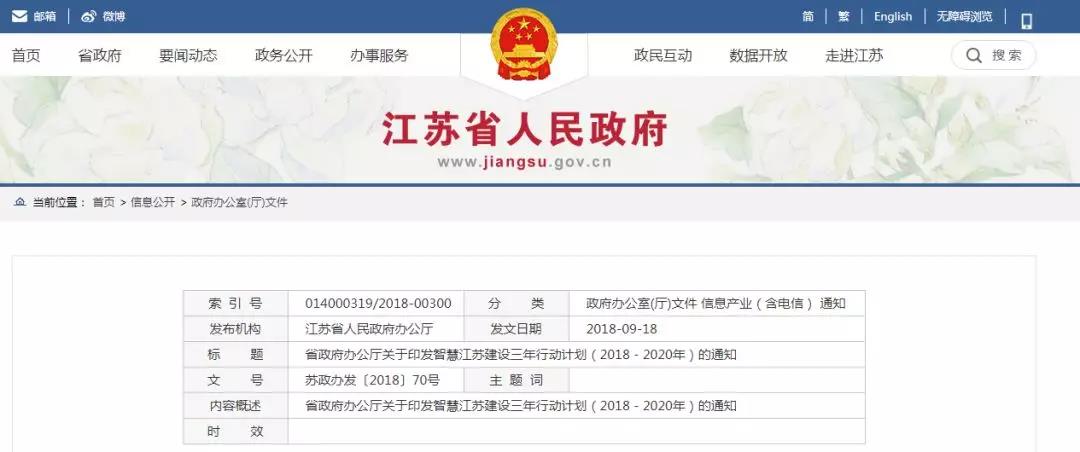 省政府办公厅关于印发智慧江苏建设三年行动计划(2018-2020年)的通知