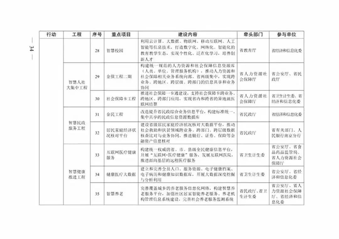 4﹒智慧民政。结合“金民工程”等国家重点信息化项目建设,深化全省民政业务一体化应用,全面集成社会组织、救助、养老、慈善、婚姻、殡葬、未成年人保护等民政业务,实现协同联动。整合各类社会救助资源,构建覆盖城乡、信息共享、应用融通的“大救助”体系,促进精准扶贫、精准救助。