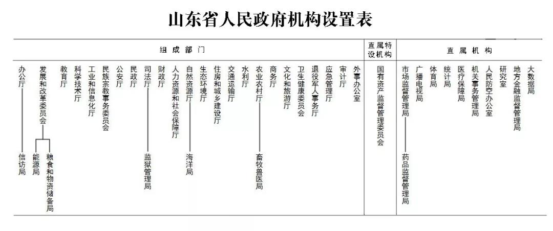 2.山东省人民政府机构设置表