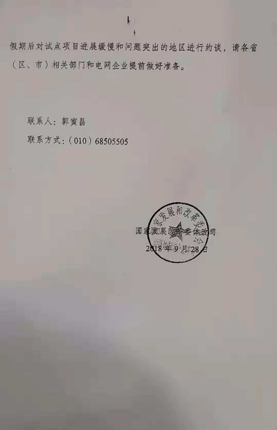 国庆节前发改委向各省、自治区、直辖市发改委、能源局、经信委(工信委、工信厅)、国网、南网、内蒙古电力公司下发通知,将于节后对增量配网试点改革进展缓慢、问题突出地区进行约谈。